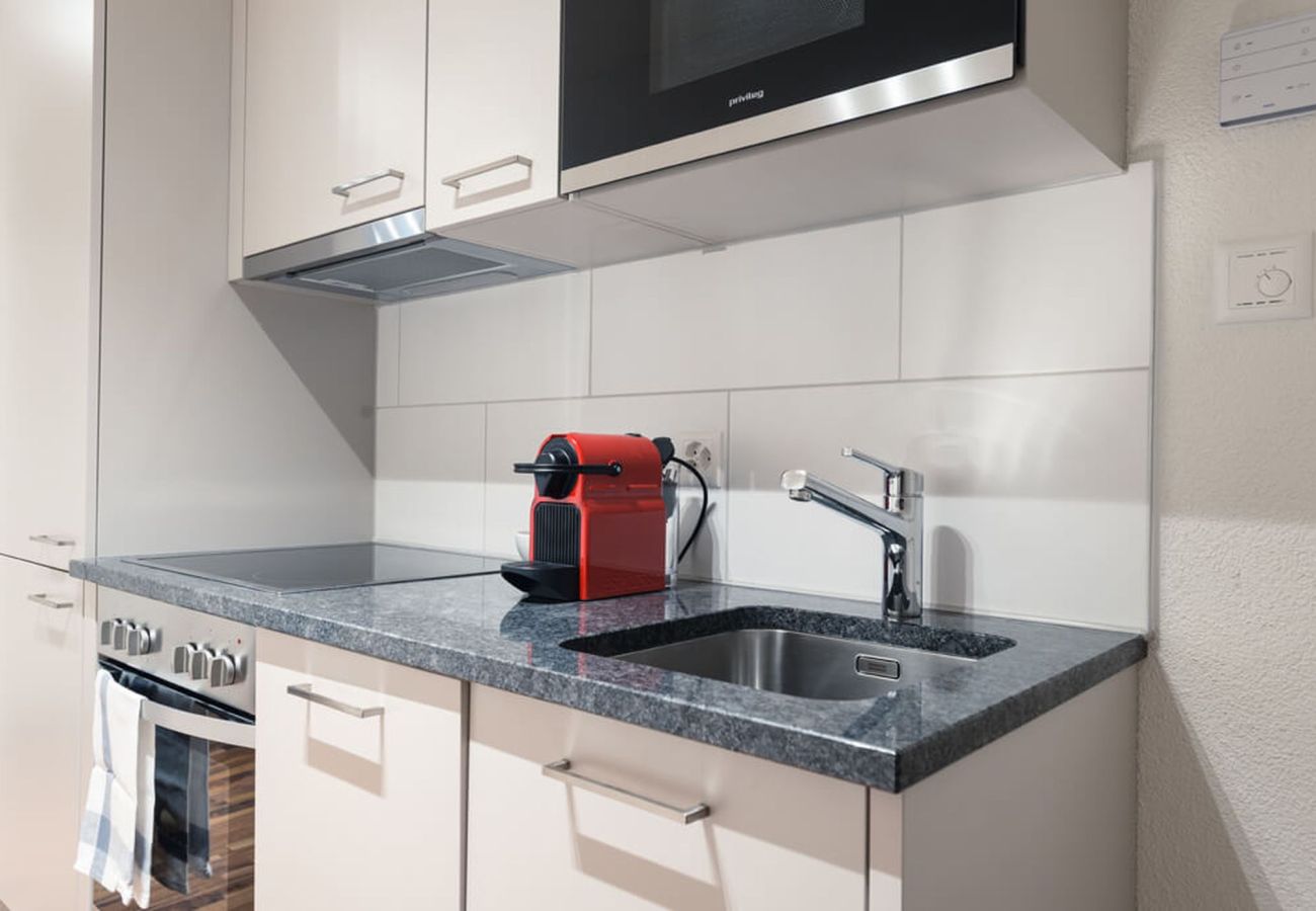 The furnished „Wiedikon“ apartments are the ideal accommodation for leisure or business travellers coming to Zurich. This furnished studio impresses with its elegant design and central location. On 29m2 you will find everything you need for work or leisure. There is a double bed and an additional sofa with pull-out function. In the kitchen you find all the necessary utensils to cook and of course a bathroom belongs to this spacious studio. All in all, this furnished business apartment offers all-round comfort in a sought-after neighborhood.