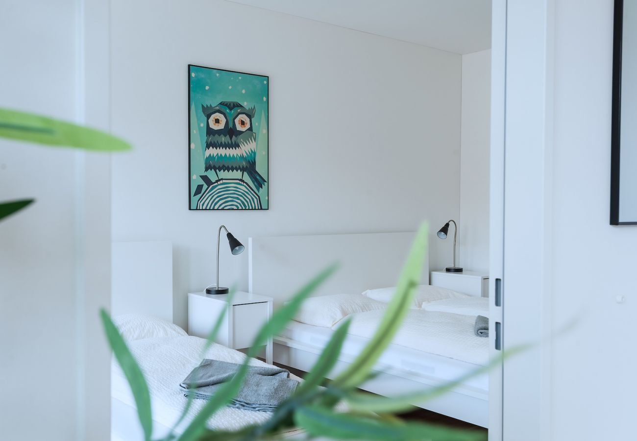 L'hébergement peut héberger jusqu'à quatre personnes. Dans la chambre spacieuse il y a un grand lit double et un lit simple. Le salon lumineux dispose d'une salle à manger confortable et d'un canapé supplémentaire avec fonction coulissante pour une personne. A côté du salon se trouve une cuisine ouverte avec plaques de cuisson, réfrigérateur, micro-ondes, machine à café, lave-vaisselle et tous les ustensiles de cuisine utiles. Une salle de bains privée fait bien sûr aussi partie de l'hébergement. Il y a aussi un balcon confortable où vous pouvez vous détendre le soir.