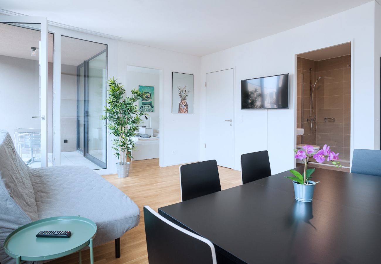 Cet appartement d'affaires de 1,5 pièce est une solution de vie moderne pour votre séjour d'affaires à Bâle.