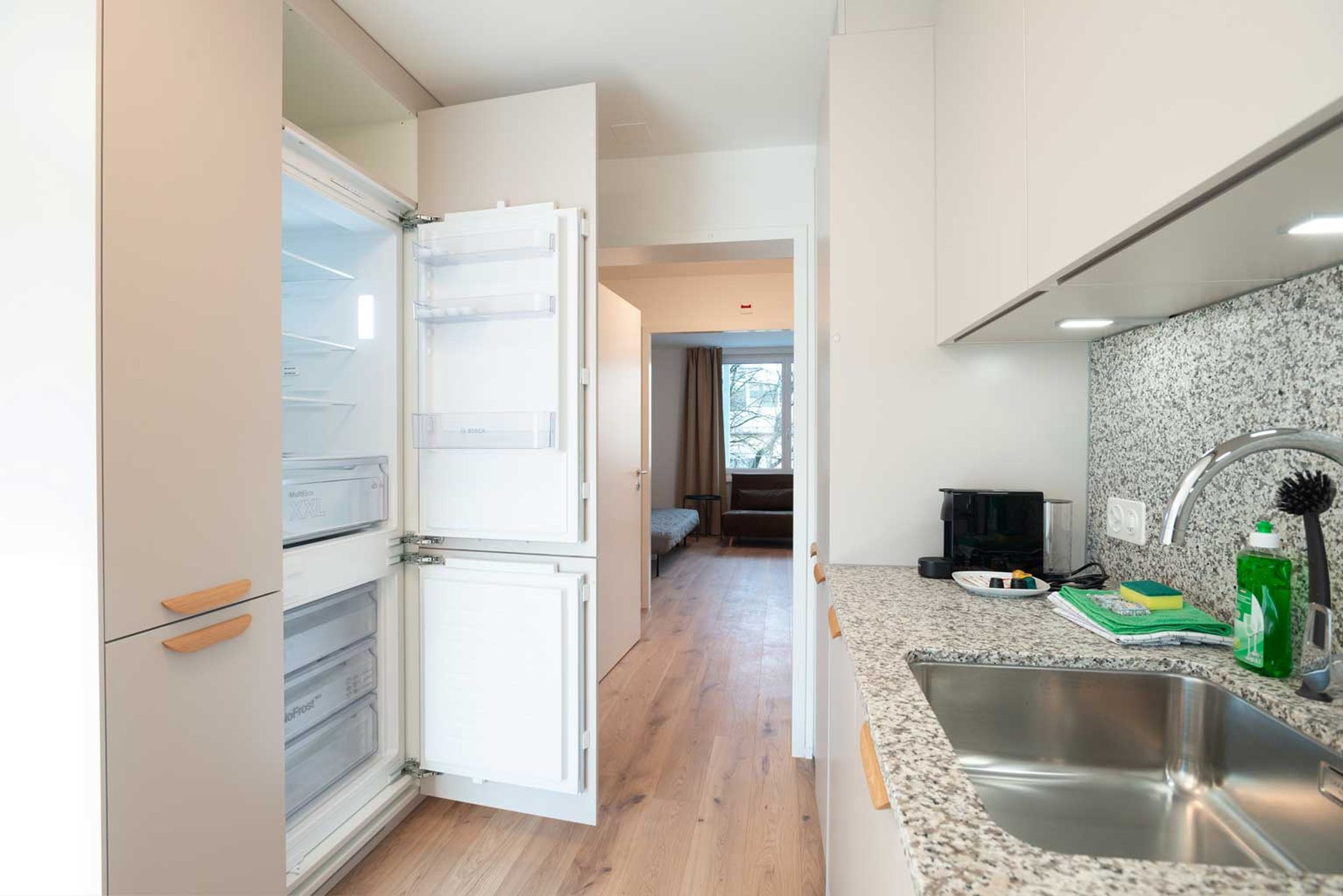 Sauberkeit im Küchenbereich/Kühlschrank, Heizung im Bad nicht regulierbar, Fotos in der Anzeige zeigen ein anderes Apartment