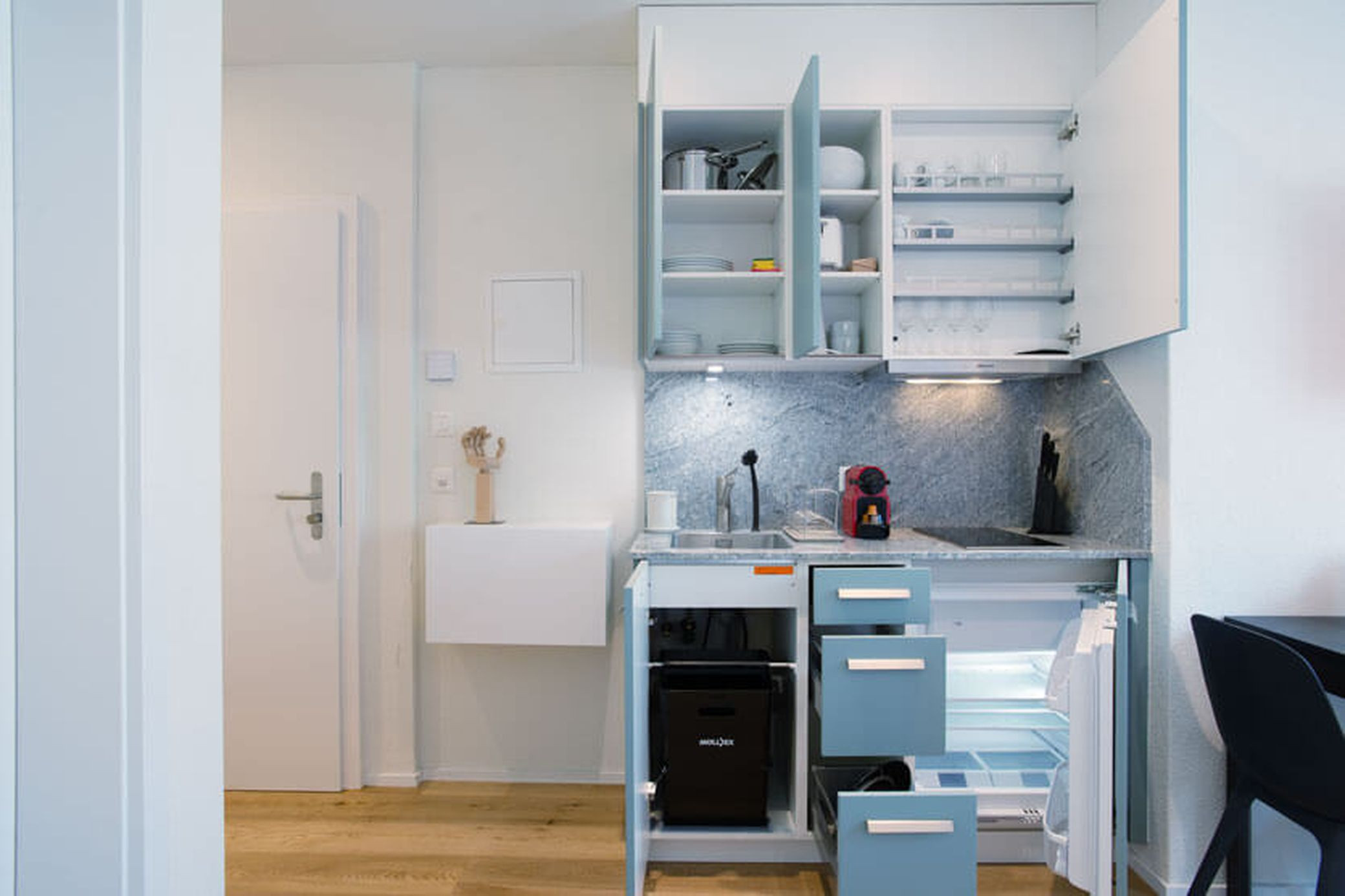 Le studio est situé à Zurich Oerlikon, dans un quartier animé de la ville de Zurich. De nombreuses entreprises nationales et internationales y ont leur siège principal grâce aux excellentes connexions avec l'aéroport et la ville. La gare d'Oerlikon est à quelques minutes de l'appartement. De là, vous pouvez rejoindre la gare centrale et l'aéroport en train en 5 minutes.