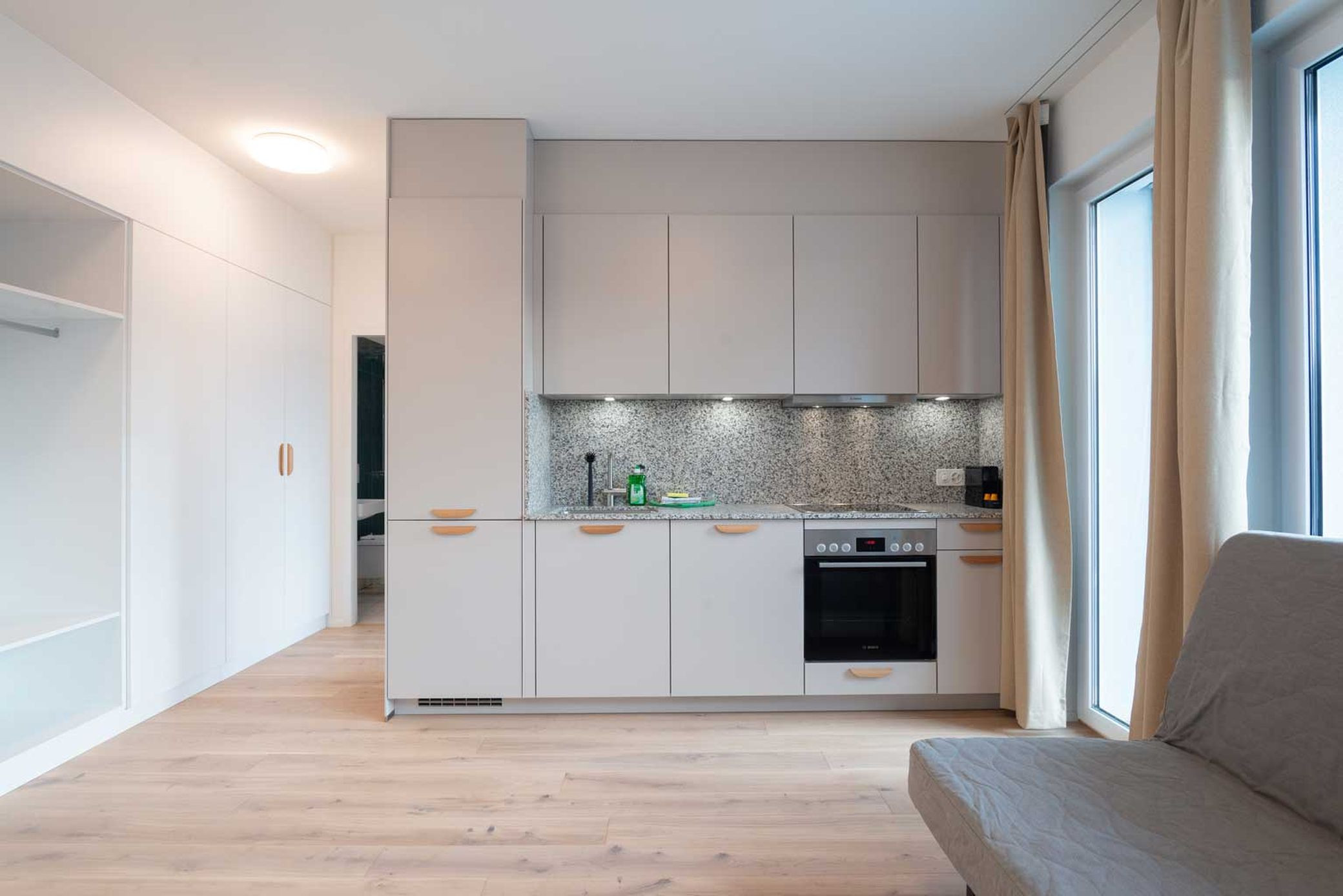 Su 39m2 troverete qui una pura oasi di benessere. Il Business Apartment "Mint" è la sistemazione ideale per il vostro soggiorno d'affari a Zurigo. L'appartamento arredato dispone di due spaziose camere, cucina, bagno e balcone. L'appartamento può ospitare in totale quattro persone.