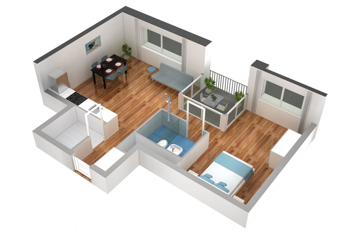 Apartament posiada 2,5 pokoju składającego się z sypialni i dużego salonu z przylegającą otwartą kuchnią. W sypialni znajduje się podwójne łóżko i szafa. Pokój dzienny wyposażony jest w sofę oraz część wypoczynkową z jadalnią i krzesłami. Kuchnia wyposażona jest w naczynia, sztućce, patelnie, płyty grzewcze, lodówkę, mikrofalówkę, zmywarkę do naczyń i ekspres do kawy. W łazience znajduje się toaleta, prysznic, suszarka do włosów i różne przybory toaletowe. W apartamencie znajduje się również prywatny balkon, gdzie można się zrelaksować i cieszyć się słońcem w piękne dni.
