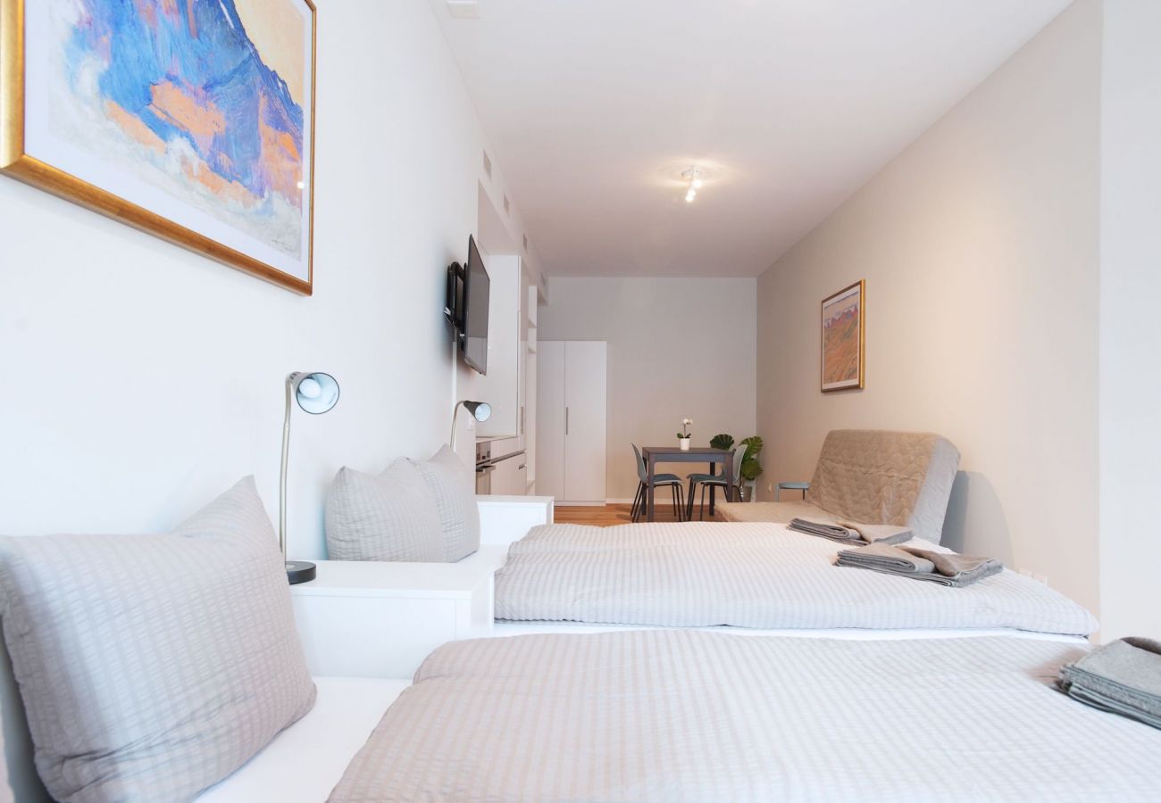 Nowoczesne studio, nazwane imieniem szwajcarskiego malarza Ferdinanda Hodlera, oferuje niezwykły komfort i sprawi, że Twoje wakacje będą niezapomnianym doświadczeniem. To piękne studio posiada pokój dzienny połączony z sypialnią, który jest wyposażony w dwa podwójne małe łóżka oraz sofę z funkcją spania. Znajduje się tutaj także miejsce do siedzenia oraz stół z krzesłami. Otwarta kuchnia posiada wszystko czego potrzebujesz, by przyrządzić pyszny posiłek. Na wyposażeniu znajduje się zmywarka, piekarnik, lodówka z zamrażarką, ekspres do kawy Nespresso oraz dodatki. Studio posiada oczywiście prywatną łazienkę z prysznicem i toaletą. Apartament posiada także taras, gdzie można się zrelaksować i odprężyć. Mieszkanie położone jest od strony dziedzińca i pomimo położenia w centrum miasta można tutaj cieszyć się ciszą i spokojem.