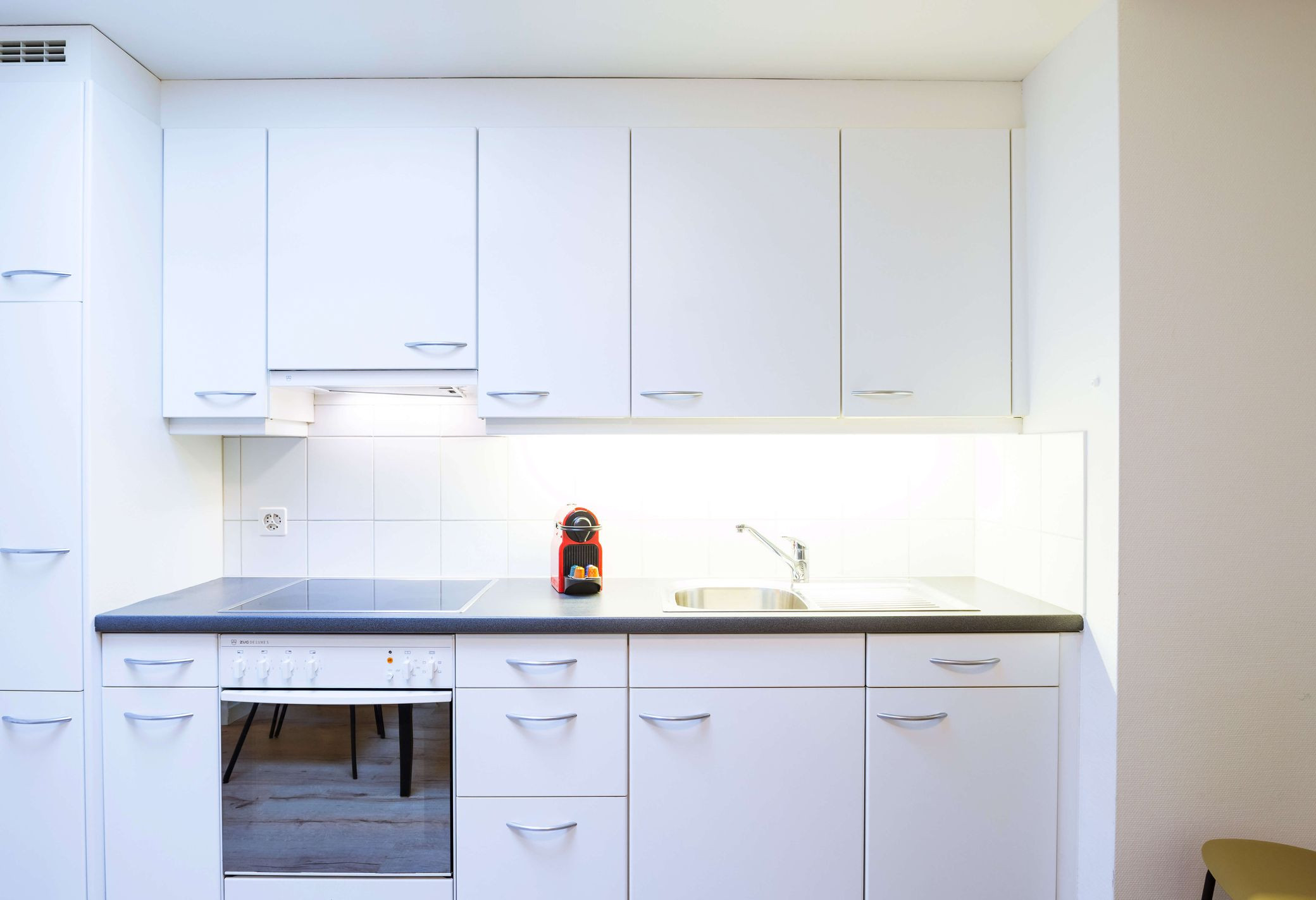 Otwarta kuchnia jest również bardzo dobrze wyposażona w akcesoria ułatwiające gościom gotowanie: płyta indukcyjna, mikrofalówka, lodówka, piekarnik, zamrażarka, zmywarka, naczynia/sztućce, przybory kuchenne, ekspres do kawy, toster i czajnik są dostępne. Tylko żywność i produkty czyszczące (proszek do prania / tabletki do zmywarki) nie są zapewnione.