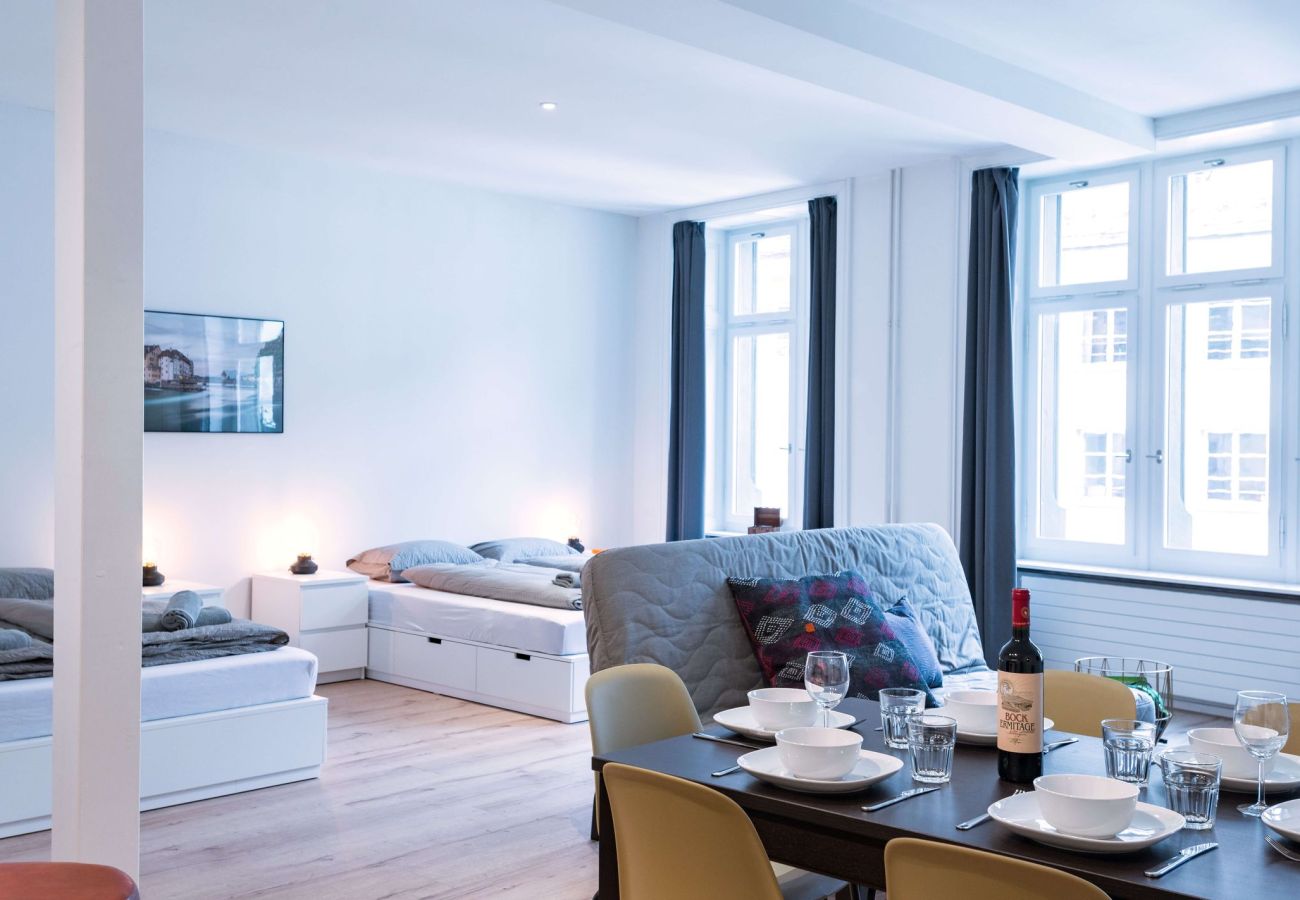 Ten piękny, przestronny apartament studyjny w Lucernie oferuje 70,5 m² i może pomieścić do 6 osób. Jest wyposażony w dwa podwójne łóżka, podwójną sofę rozkładaną i pojedynczą sofę rozkładaną. Zakwaterowanie znajduje się w bardzo centralnym miejscu, w uroczej dzielnicy starego miasta Lucerny (Weinmarkt 3, 6004). Słynny Most Kapliczny jest łatwo osiągalny w bardzo krótkiej odległości. Wiele ciekawych muzeów i pysznych restauracji można również znaleźć w bezpośrednim sąsiedztwie. Dworzec kolejowy w Lucernie jest oddalony około 10-minutowego spaceru.