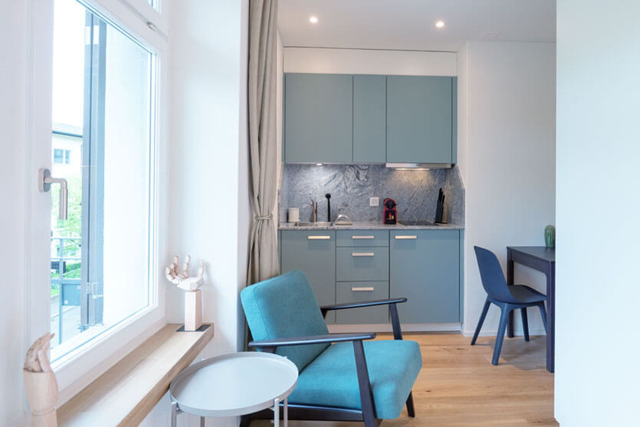 Komfortowy apartament typu studio w Zurychu Oerlikon z bezprzewodowym dostępem do Internetu, telewizorem i wieloma innymi udogodnieniami.