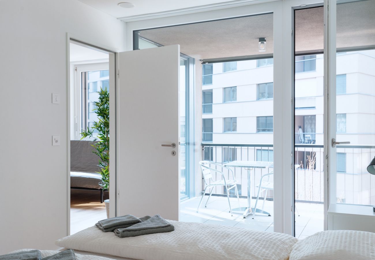O apartamento de negócios está localizado em Bâleo Erlenmatt, um edifício que combina uma variedade de usos, ofertas e estilos de vida. O edifício inclui um su-permercado Coop, uma creche, restaurantes atraentes e um centro de fitness. O edifício também é completamente livre de barreiras e, claro, há elevadores.