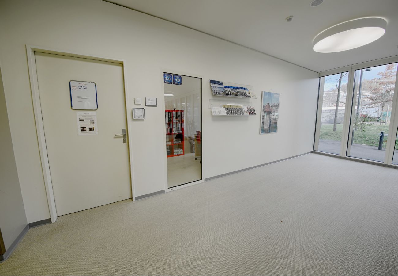 Vive centralmente no Allmend e ainda tem uma variedade de oportunidades de lazer e recreio na vizinhança imediata. Não muito longe do edifício de apartamentos encontra-se o centro de exposições, onde se realizam regularmente interessantes feiras comerciais, tais como a feira de aventuras de Luga na Suíça Central. Mesmo ao lado há também um edifício desportivo com uma piscina interior, instalações de bem-estar e um centro de fitness. Existe também um supermercado Migros no mesmo edifício. Assim, tem instalações de compras nas proximidades imediatas. Há também vários restaurantes não muito longe. Por exemplo, recomendamos o Restaurante Militärgarten na Horwerstrasse 76 ou a Ristorante-Cafeteria Accademia na Zihlmattweg 20.