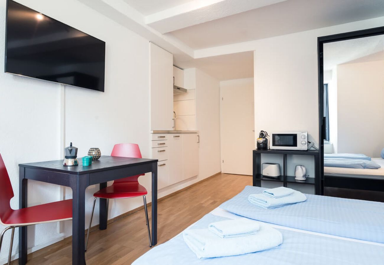 Apartamento estúdio confortável e totalmente mobiliado, com vista da bela cidade velha de Lucerna.
