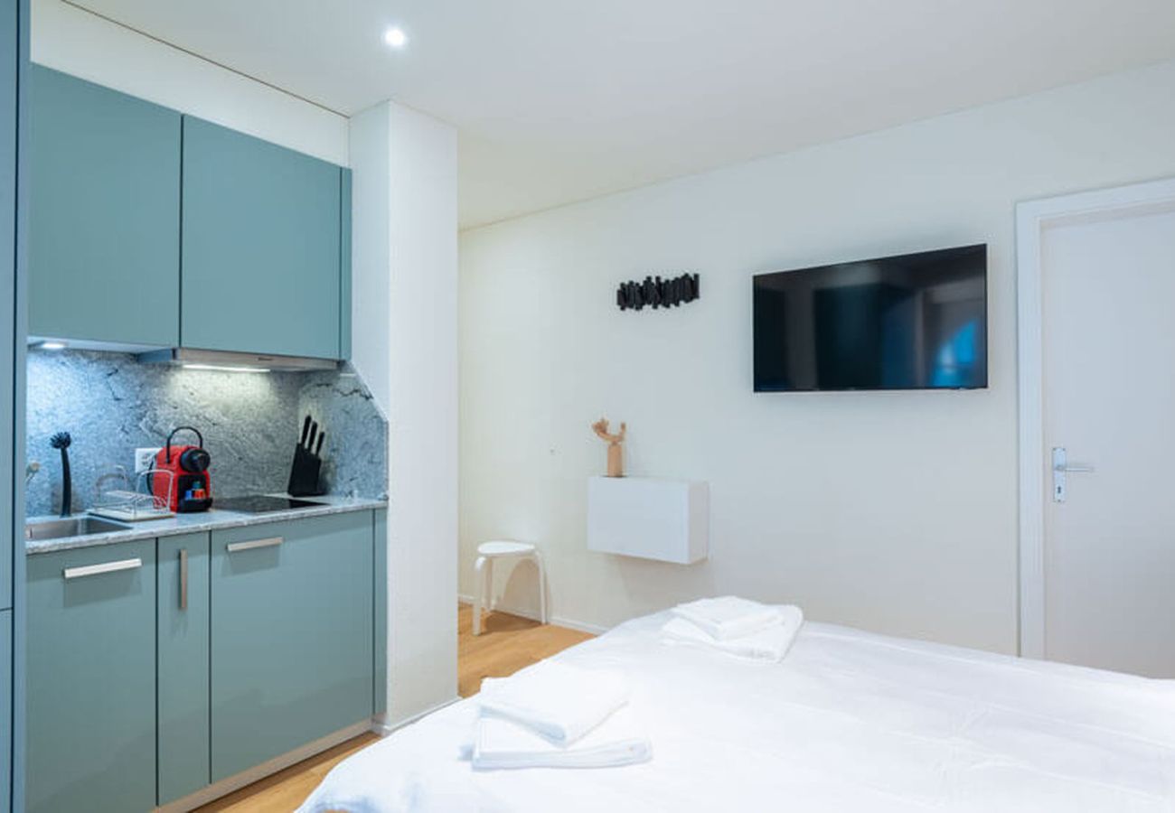 Confortável apartamento estúdio em Zurique Oerlikon, incluindo Wi-Fi, TV e muito mais.