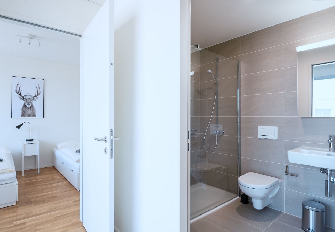 The holiday apartment is located in Erlenmatt district, an up-and-coming district designed according to the principles of sustainable district development. In 2017, the district received certification as a 2000-watt site. Here, living, working and sustainable action are united and there is a wonderful mixture of urbanity and nature. The large Erlenmattpark is located in the heart of the district and the nearby recreation area of Langen Erle is only a stone's throw away. The holiday apartment is located in Bâleo Erlenmatt, a building that combines diverse uses, offers and lifestyles. In the building, you will find a Coop supermarket, a fitness center and various catering facilities. -