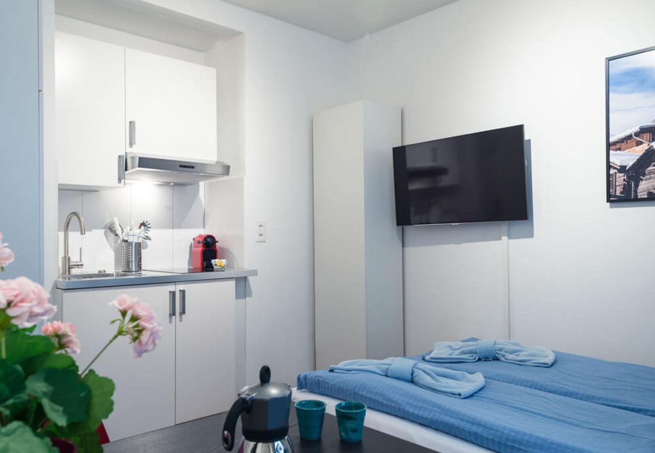 Are you looking for a cosy, small and furnished holiday home in Lucerne? Then the studio apartment called "Pluto II" is just right for you! This small holiday apartment is located in the middle of the beautiful old town of Lucerne and offers two sleeping places on 15m2. The apartment also has a fully equipped kitchenette with all the kitchen utensils you need for cooking. In the private bathroom you will find a shower, hair dryer, towels, bath towels and toiletries.