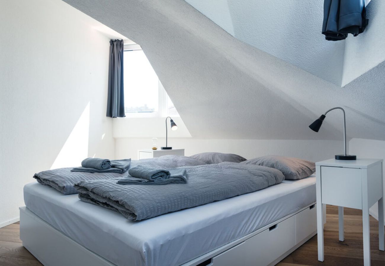 Are you planning to go on holiday to Zurich and have not yet found suitable accommodation? Then this holiday or business apartment is the right solution for you. This is an elegant and furnished attic apartment in Zurich Wiedikon boasts 3 spacious rooms. Altogether this modern holiday apartment offers sleeping places for five persons.. There are two large double beds and in the living room there is an additional sofa bed. Moreover, the holiday accommodation offers a modern kitchen equipped with the most modern kitchen appliances. Of course you also have a private bathroom in the apartment.